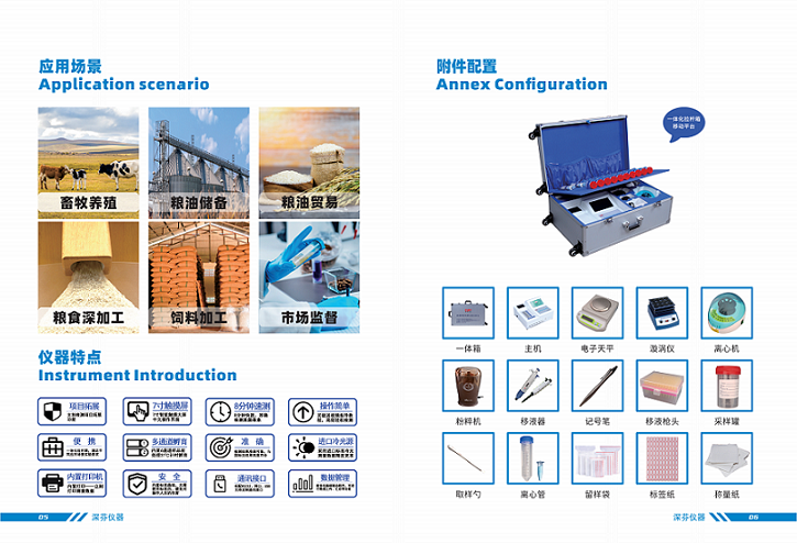 深圳市芬析儀器制造有限公司(深芬儀器)研發生產的CSY-YG701嘔吐毒素快速測定儀應用競爭抑制免疫層析的原理,通過檢測線熒光定量卡中的熒光強弱程度,定量分析待檢樣品中嘔吐毒素殘留含量,能夠快速檢測玉米、小麥、大米、大麥、小米和燕麥等谷物、飼料、面粉、食用油、調味品等食品中嘔吐毒素含量,適用于糧油監測中心、糧油飼料生產加工、食品加工貿易、畜禽養殖戶自查、質監部門用于市場快速篩查等。
